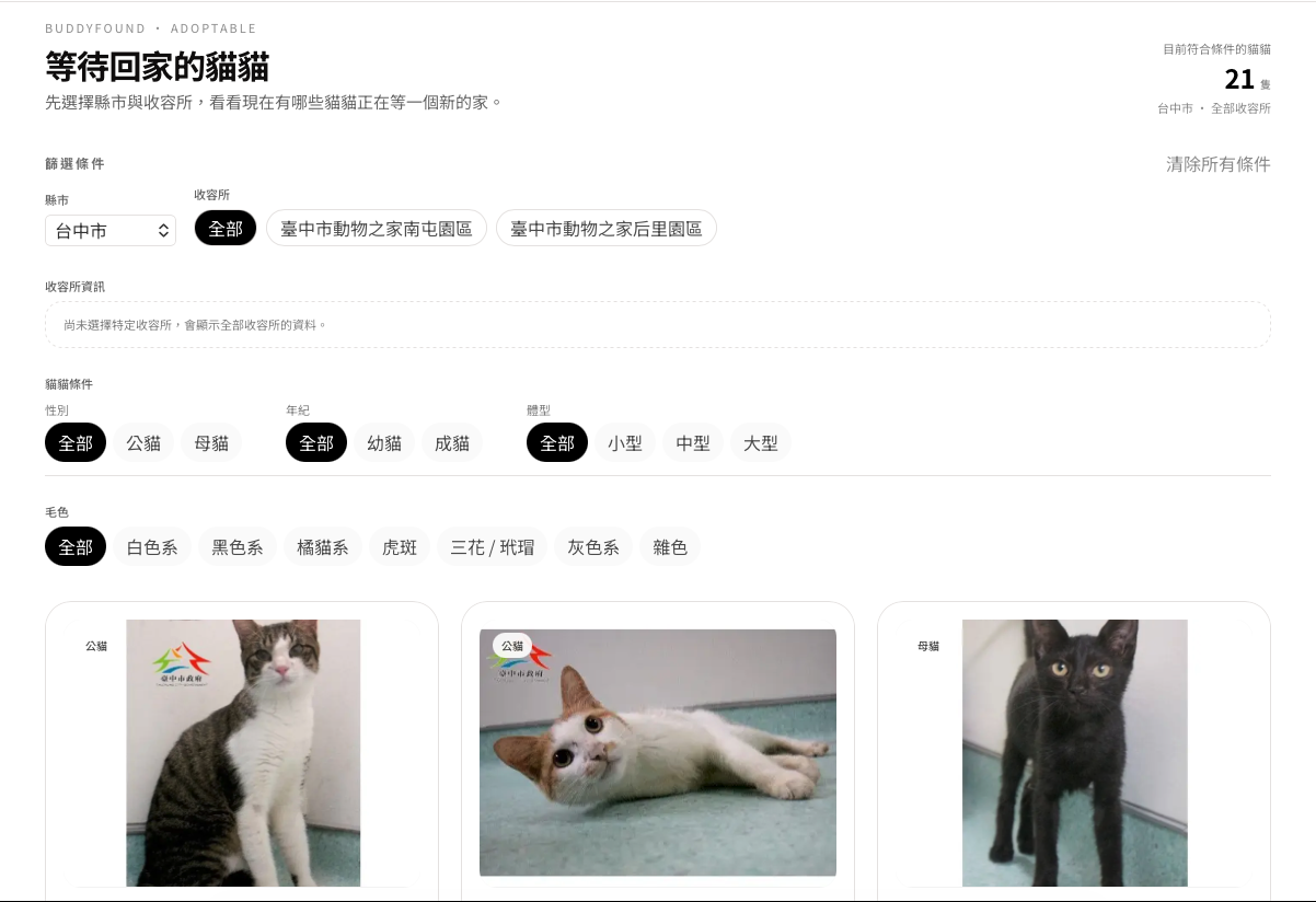 我們在 BuddyFound 網站新增了 「待領養貓咪名單」 🔎 🐾