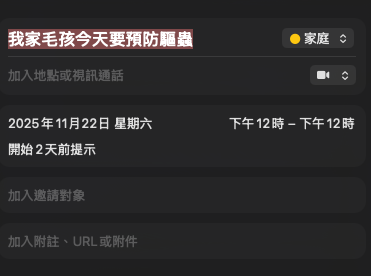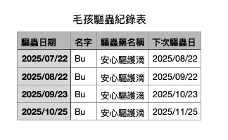 我們家有三隻毛孩,每次要記驅蟲日期放在行事曆裡,實在太麻煩。